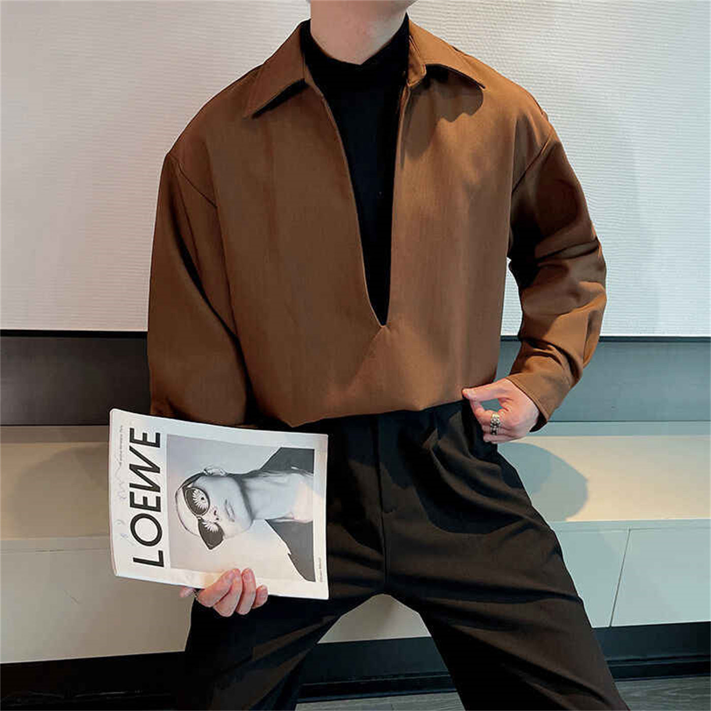 Handsome Man With Deep V-neck And Long Sleeve Shirt
