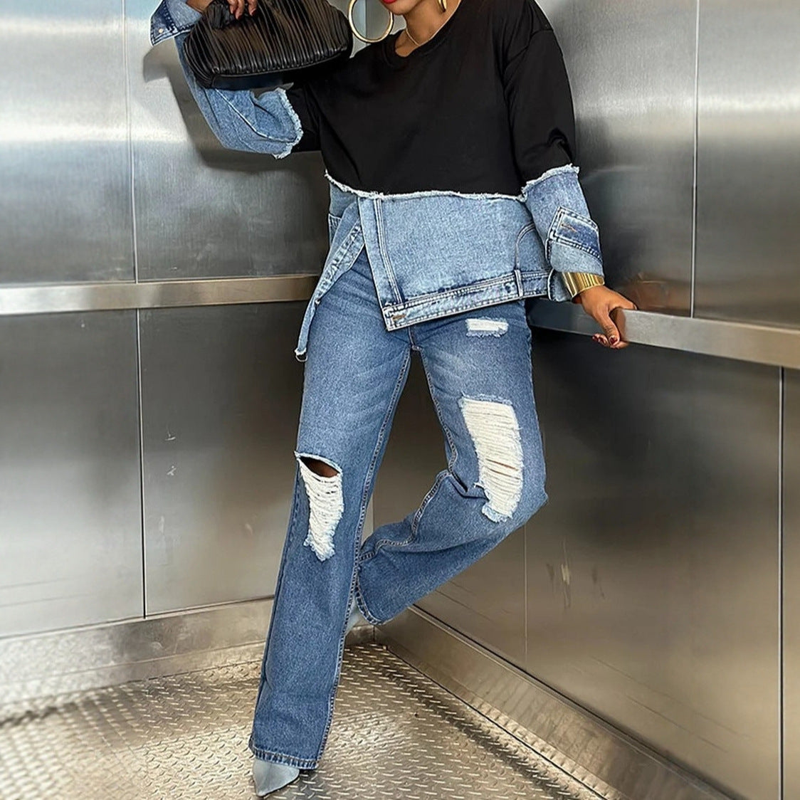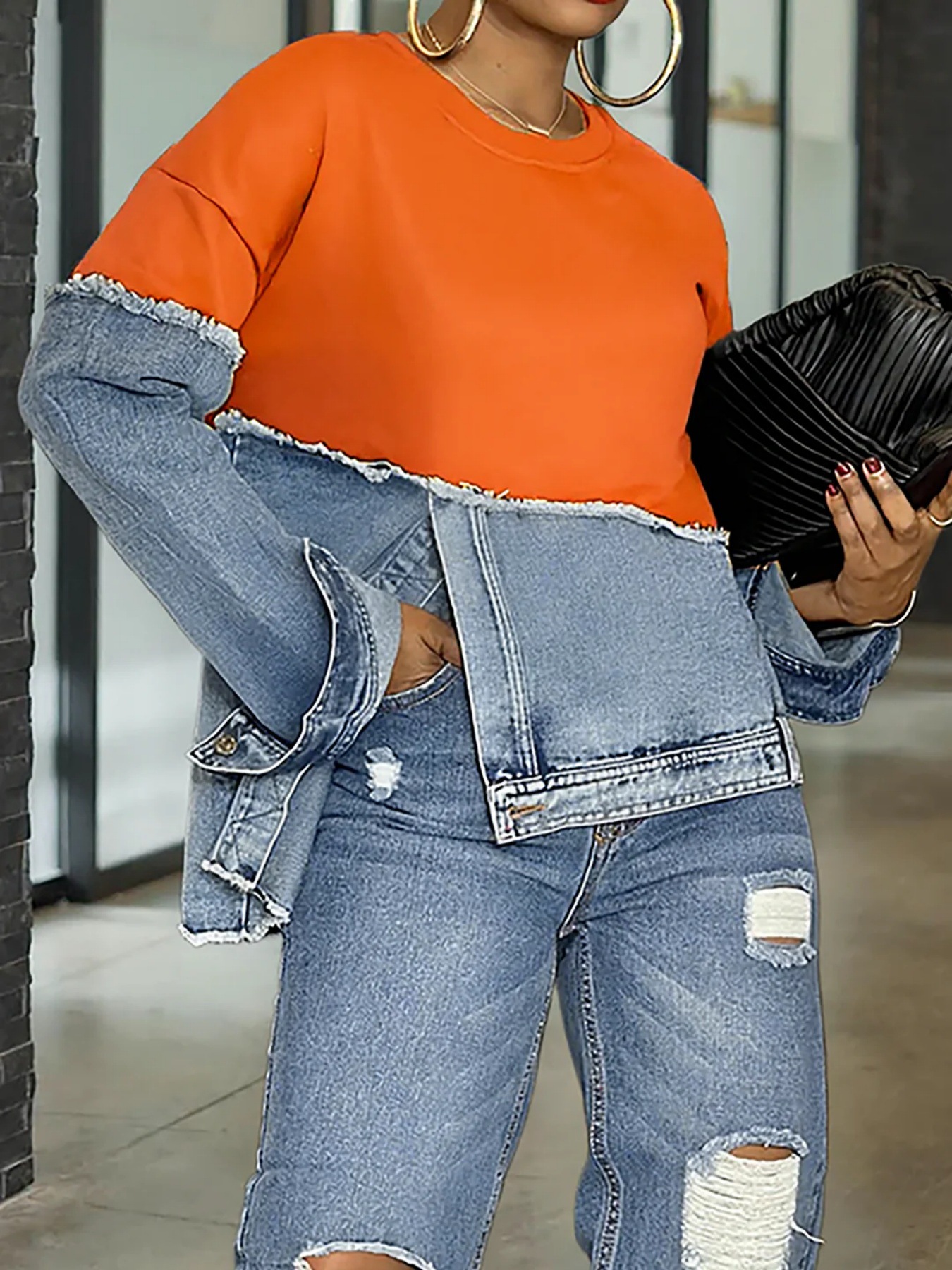 Womens Casual Fashionable Color-blocked Minimalist Top